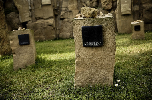 El memorial a las víctimas del Holocausto, ubicado en el Fossar de la Pedrera del Cementerio de Montjuïc, consta de diez piedras que representan diez campos de exterminio.