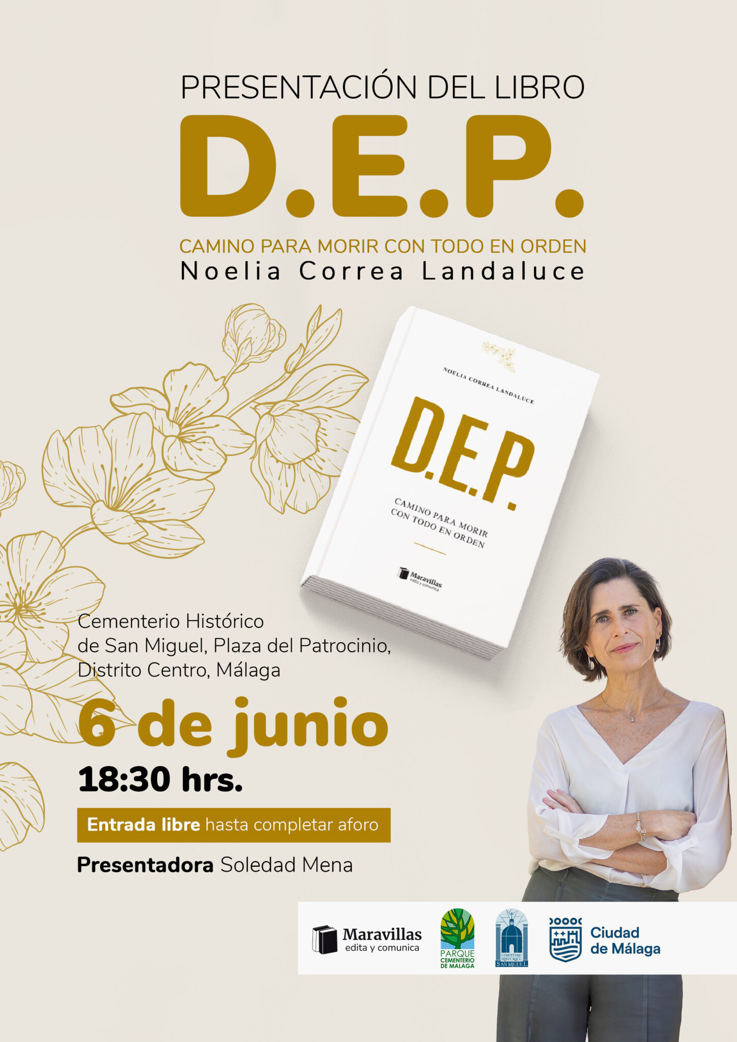 Viernes día 6 a las 18:30h. tiene lugar la presentación del libro D.E.P., camino para morir con todo en orden, escrito por Noelia Correa y presentado por Soledad Mena. La entrada es libre hasta completar aforo.