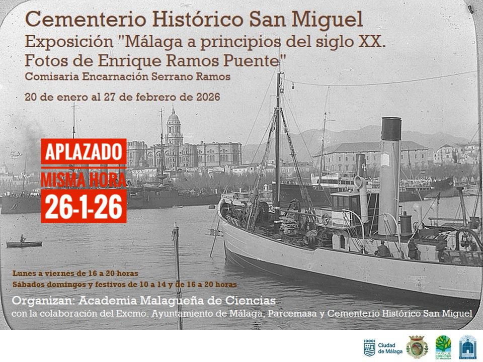 En señal de duelo y respeto aplazan los actos, programados para mañana martes 20 de enero, de inauguración de la Exposición “Málaga a principios del siglo XX. Fotos de Enrique Ramos Puente” en el Cementerio Histórico San Miguel de Málaga.