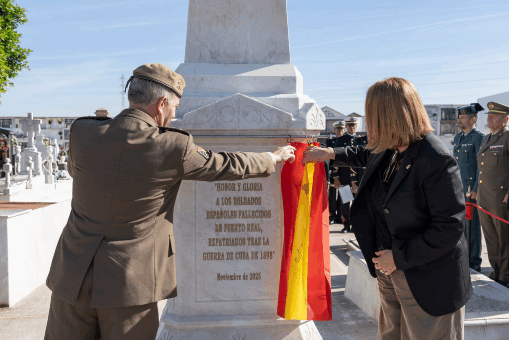 El pasado 11 de noviembre se vivió en el Cementerio de San Roque de Puerto Real, un emotivo acto de justicia histórica con la inauguración de un monumento funerario en memoria de los 104 soldados españoles repatriados de la Guerra de Cuba, que fallecieron en condiciones precarias en 1898, tras ser atendidos en un hospital improvisado en las ruinas del Castillo de San Luis, en la Isla del Trocadero.